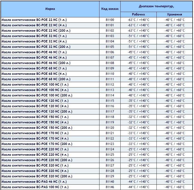 Применение компрессорных масел BC-POE 32 FV и BC-POE 68 FV допускается для компрессоров холодильных систем и кондиционирования воздуха Panasonic, Daikin, Mitsubishi, Hitachi, LG, Trane, Bitzer, Carrier, Danfoss.