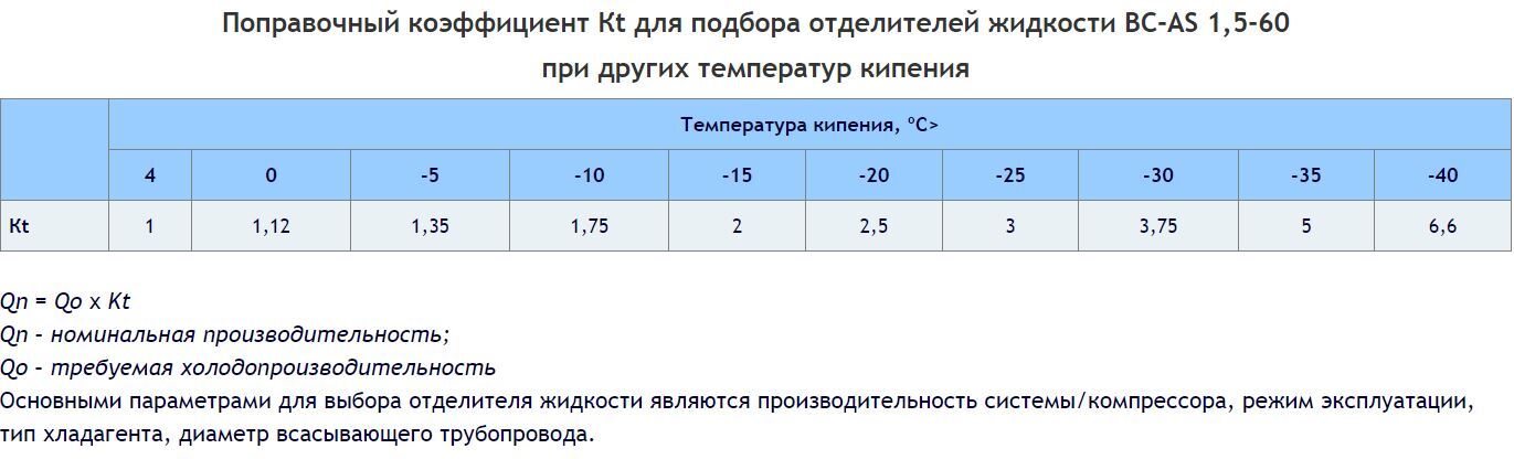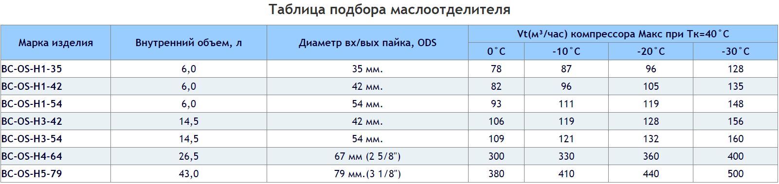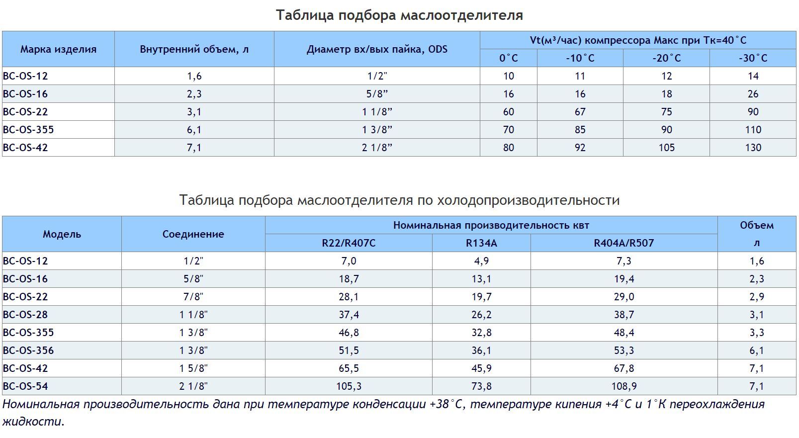 Максимальная объемная производительность компрессора(-ов) не должна быть выше значения Vt, указанного в таблице характеристик маслоотделителя при данном режиме эксплуатации