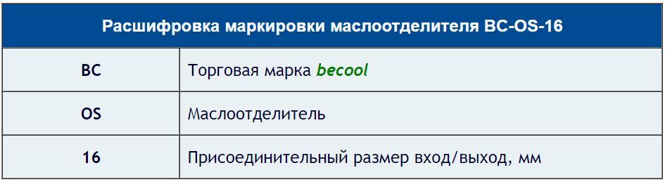 Маслоотделители BC-OS-12 - BC-OS-54 имеют омедненные патрубки (вход/выход) под пайку.