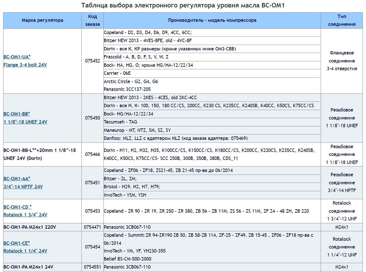 Электронные регуляторы уровня масла ВС-ОМ1 / BC-OM2 CO2